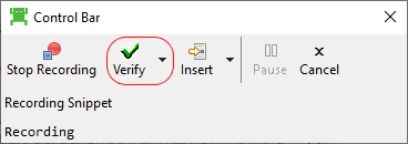 Alternative Step 8: Stop test case execution by clicking on "Stop Recording" on the Squish Control Bar: