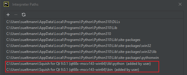 From the list select your used interpreter and click on the last item in the toolbar, which will open a new window that shows the paths for the interpreter.